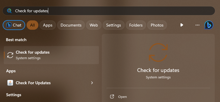 1.Apri ilMenù iniziale,tipoControlla gli aggiornamenti,e premere ilEntratasto sulla tastiera.