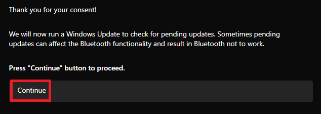 6.Dopo aver dato il consenso, clicca suContinuareper avviare il processo e procedere con le istruzioni visualizzate sullo schermo.