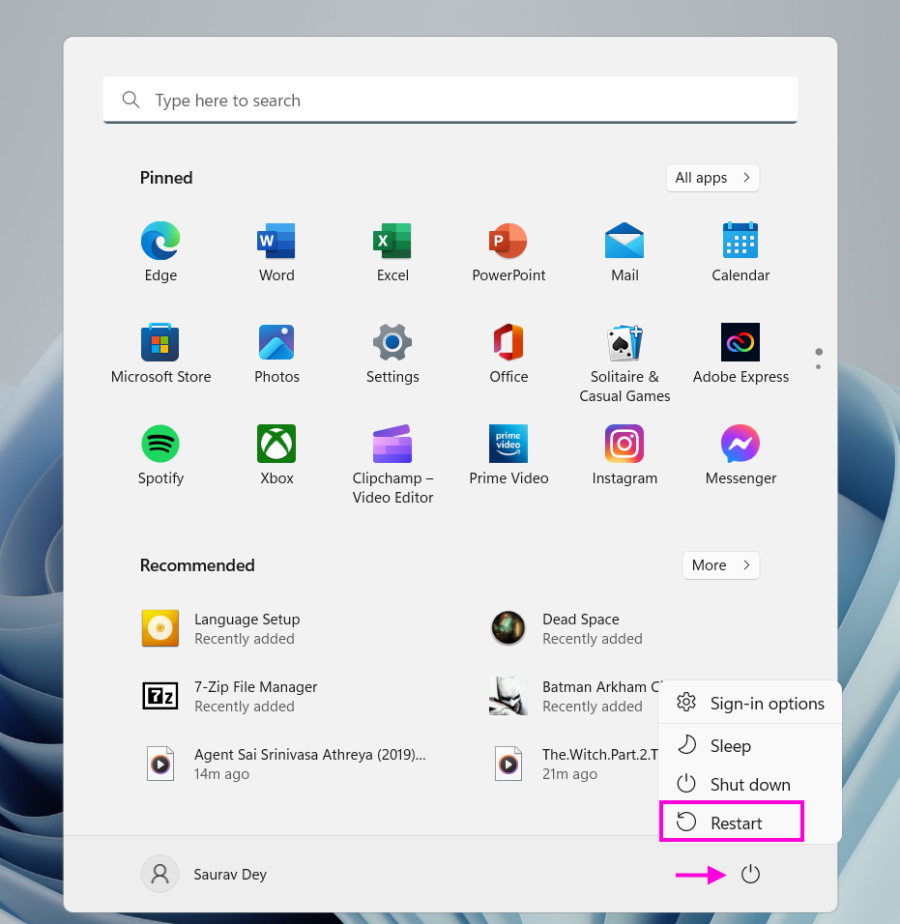 Se hai già provato a fermare Task Manager per correggere il mancato funzionamento della modalità efficienza su Windows 11, prova a riavviare il computer. Il riavvio del computer è la soluzione più semplice ma è molto efficace. Funziona per la maggior parte del tempo, soprattutto se i problemi sono causati da un problema tecnico temporaneo del sistema.