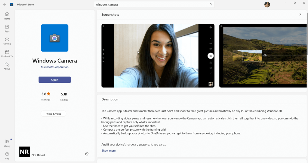 Passaggio 4 –Apri ilMicrosoft Storee cerca Fotocamera Windows.