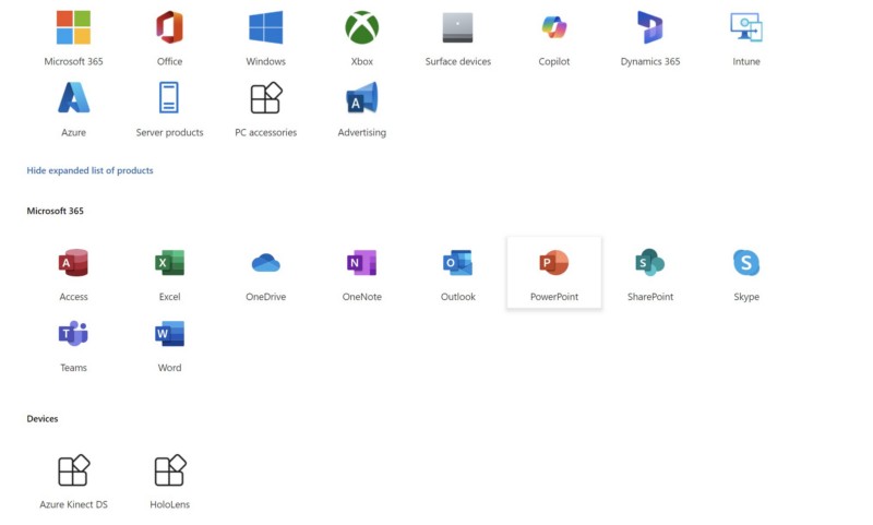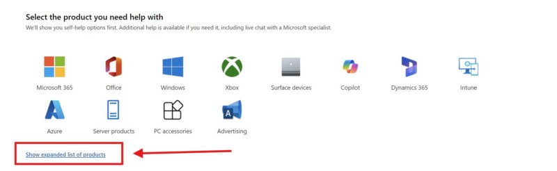 Quindi, utilizza il tuo browser Web preferito peraprire la Microsoft ufficialesupportosito webutilizzando il collegamento fornito.Accedi al tuo account Microsoft, se non hai effettuato l'accesso. Ora fai clic suPulsante Mostra elenco espanso di prodottiper espandere la sezione.