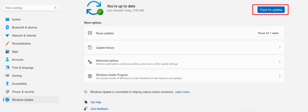 2.Dirigiti alAggiornamento di Windowssezione dalla barra laterale.