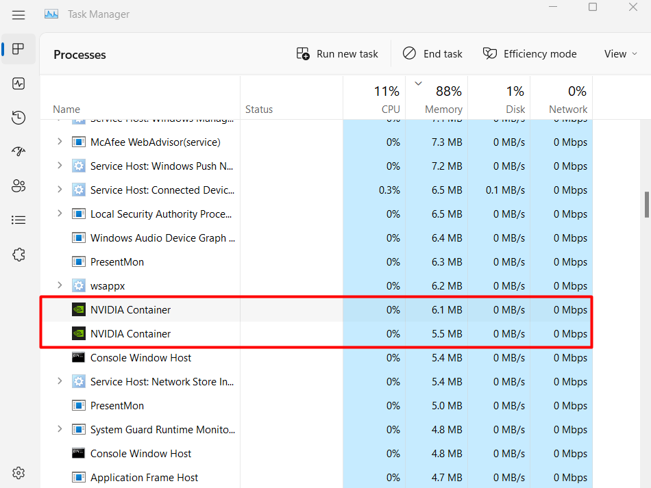 5.CercareServizi NVIDIAInResponsabile delle attivitàsotto ilProcessi in backgroundsezione.
