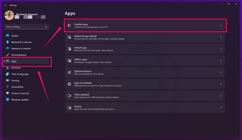 2.Vai aAppscheda sulla barra di navigazione sinistra e selezionareApp installateopzione nel riquadro di destra.