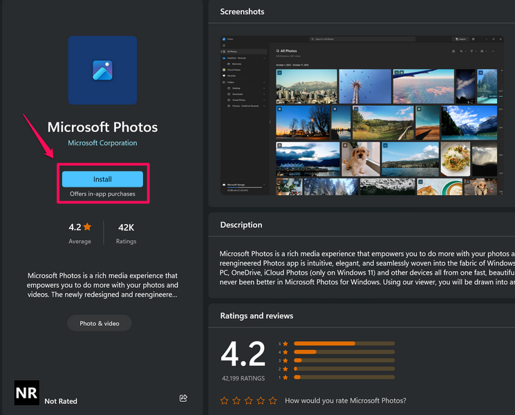 8.Una volta disponibile l'aggiornamento dell'app Foto, fai clic suOttieni il pulsanteaccanto ad esso per installarlo sul tuo dispositivo.