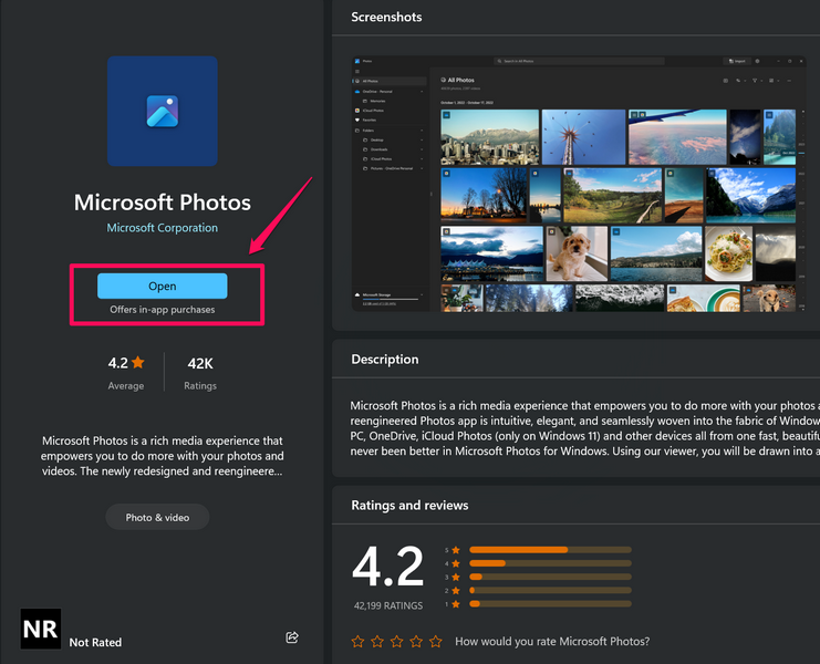 8.Una volta completata l'installazione, fare clic suPulsante Apriper avviare l'app Foto sul tuo dispositivo.