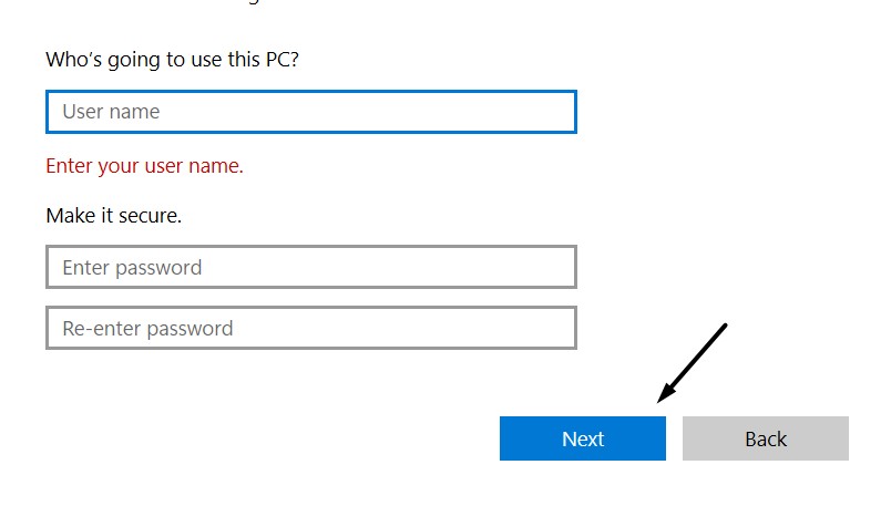 6.Segui le istruzioni visualizzate sullo schermo per creare un nuovo account utente sul tuo PC Windows 11.