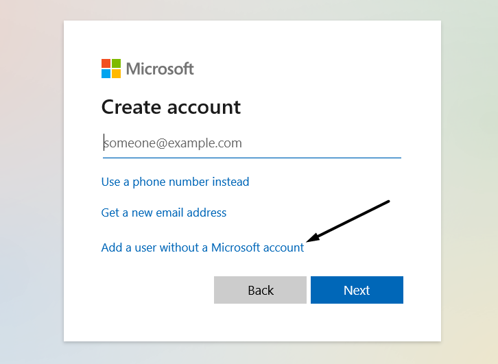 4.SelezionareAggiungi un utente senza un account Microsofte inserisci il nome e la password che desideri impostare.