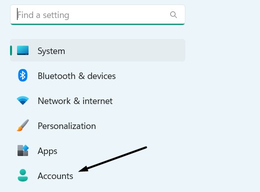 1.Apri ilApplicazione Impostazionisul tuo PC e spostati sul fileContisezione dal riquadro di sinistra.
