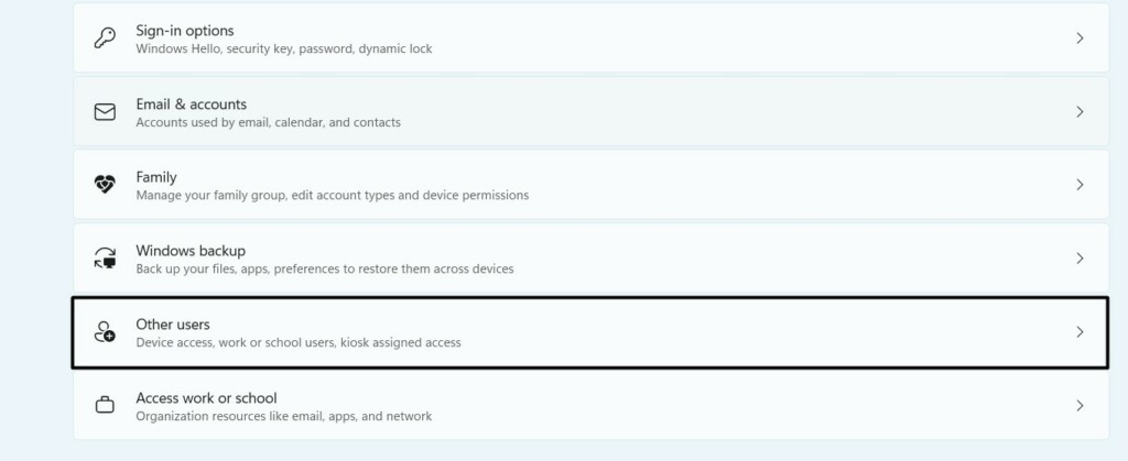 7.Una volta terminato, fai clic sul tuo account utente creato di recente nel fileAltri utentifinestra.