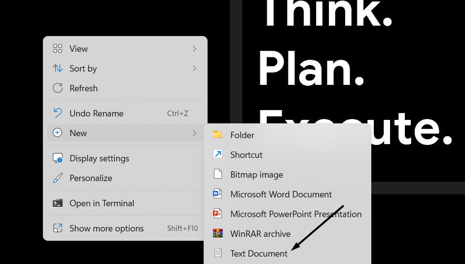 2.Seleziona ilDocumento di testoopzione daNuovosottomenu e premere il tastoInserisci la chiaveper salvarlo.