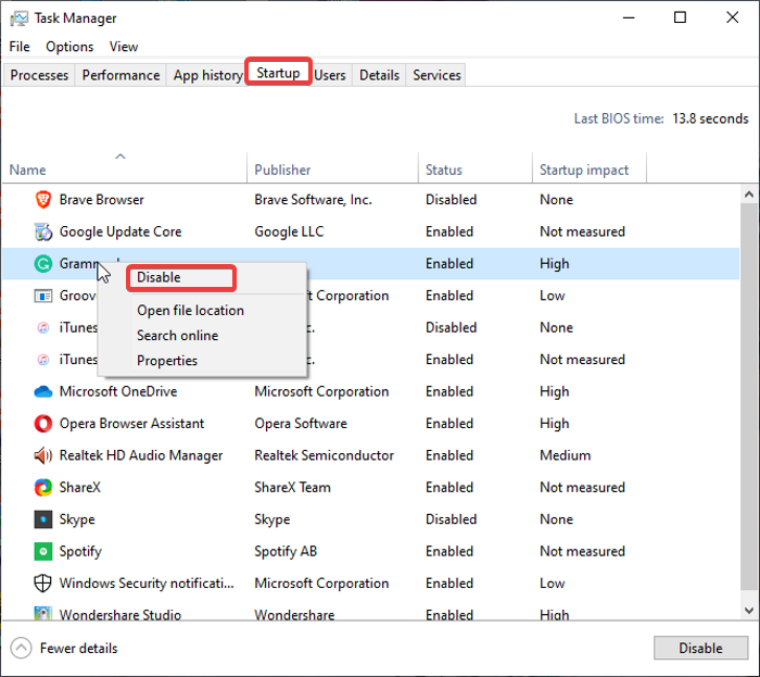 2.SelezionareAvvionella pagina del task manager e fai clic con il pulsante destro del mouse sui programmi che desideri disattivare.