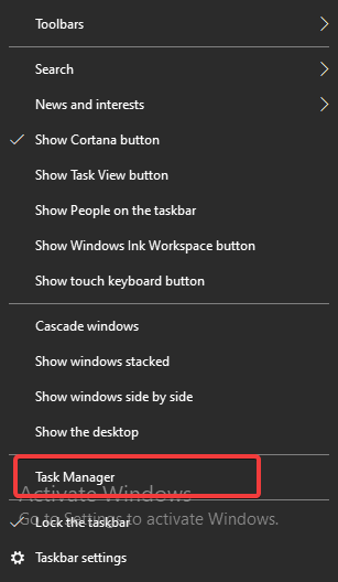 1.Fare clic con il tasto destro sulla barra delle applicazioni e selezionareResponsabile delle attivitàdal menu risultante
