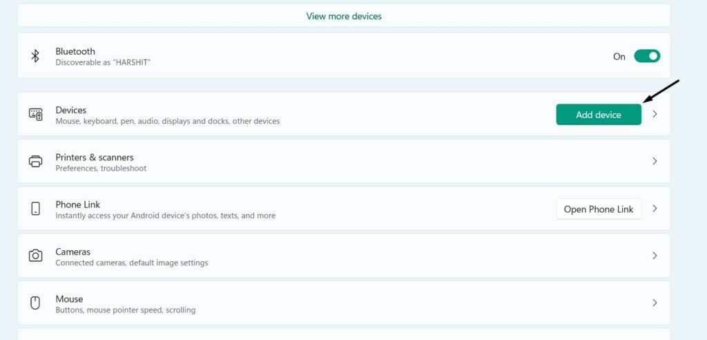 4.Una volta disaccoppiata la tastiera, fare clic suAggiungi dispositivopulsante e scegli ilBluetoothopzione.