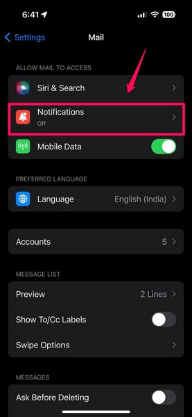 Quindi, utilizza i seguenti passaggi per configurare correttamente le notifiche dell'app Mail sul tuo iPhone: