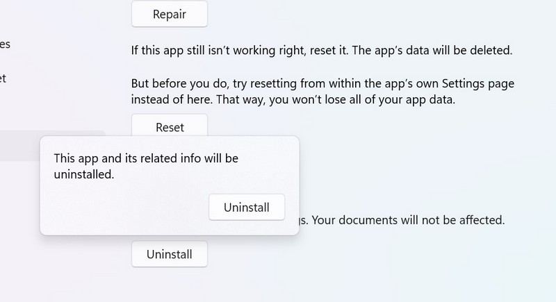 9.Se la riparazione dell'app non ha risolto il problema, fai clic suPulsante di ripristinonella pagina Opzioni avanzate.
