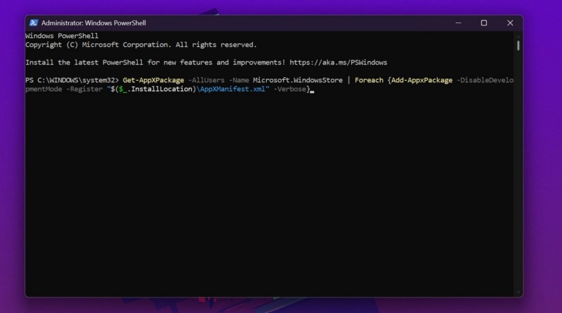 8. Registra nuovamente Microsoft Store sul tuo PC o laptop Windows 11