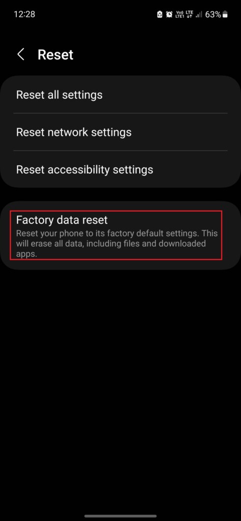 Se sei sicuro che il bug sia dovuto a un falso rilevamento e nessuno dei metodi sopra menzionati ti ha aiutato, il ripristino delle impostazioni di fabbrica è l'ultima opzione. Tuttavia, dovresti eseguire un backup di tutti i tuoi dati prima di eseguire un ripristino, poiché cancellerà tutti i dati sul telefono, oltre a ripristinare le impostazioni e le modifiche ai valori predefiniti di fabbrica. Segui questi passaggi per eseguire un ripristino delle impostazioni di fabbrica sul tuo smartphone Samsung Galaxy: