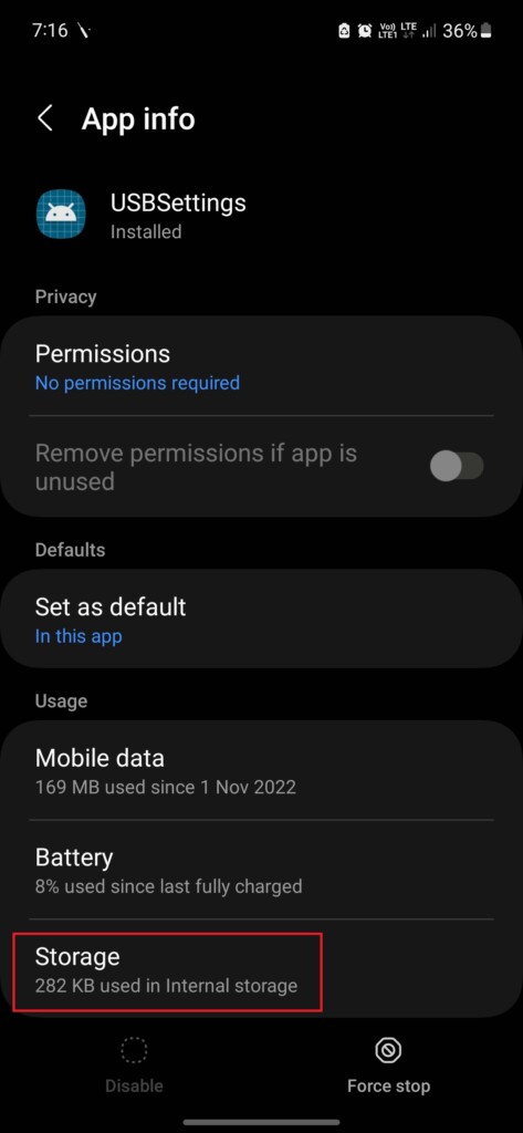 5.Scorri verso il basso e toccaImpostazioni USB.