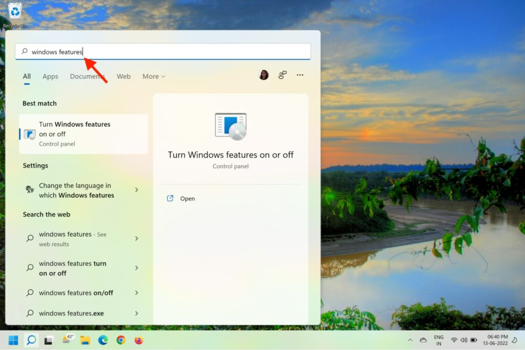 2.TipoFunzionalità di Windowsnella casella di ricerca.
