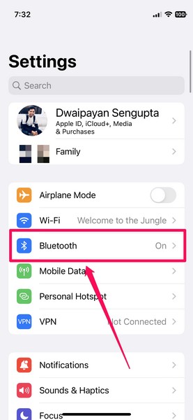 7.Ora, sul tuo iPhone, avvia il fileApplicazione Impostazionie vai aBluetooth.