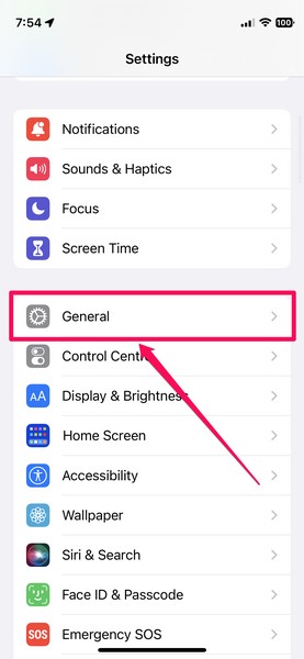 2.Scorri verso il basso e toccaGeneraleopzione nell'elenco.