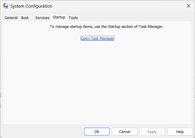 4.Una volta terminato, vai aAvvioscheda, fare clic suApri Gestione attivitàe quindi terminare tutti i servizi non Microsoft.