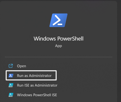 2.Successivamente, fare clic suEsegui come amministratoreopzione per avviare PowerShell con privilegi amministrativi.