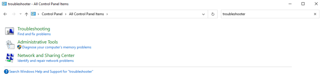 Passaggio 3:Una volta entrato nel menu tradizionale del pannello di controllo, utilizza la barra di ricerca in alto per accedere a "risoluzione dei problemi" per trovare le soluzioni.