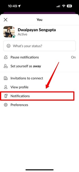 8. Controlla le impostazioni di notifica nell'app Slack sul tuo iPhone