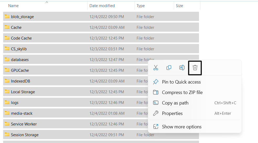 4.Una volta eliminati tutti i file, esciEsplora file, riavvia il PC e verifica se la chat ora viene caricata.