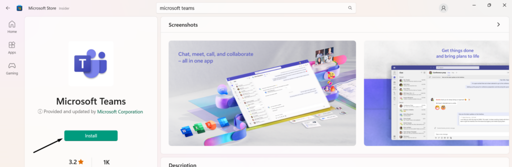 1.Apri ilApplicazione Microsoft Storee cercare il fileApplicazione Microsoft Teamsutilizzando la casella di ricerca.
