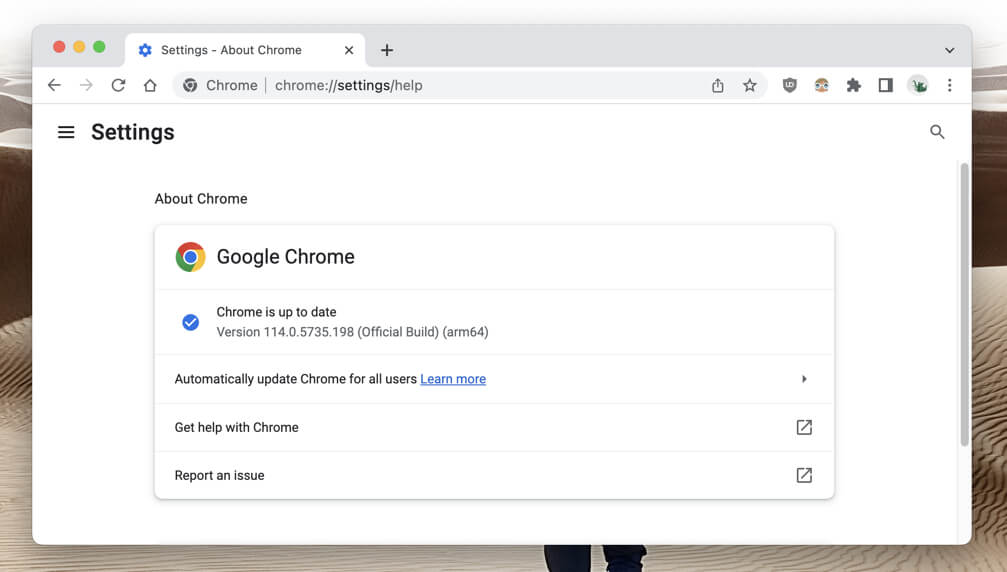 Il tuo browser dovrebbe aggiornarsi automaticamente, ma puoi sempre ricontrollare visitando il pannello Impostazioni.