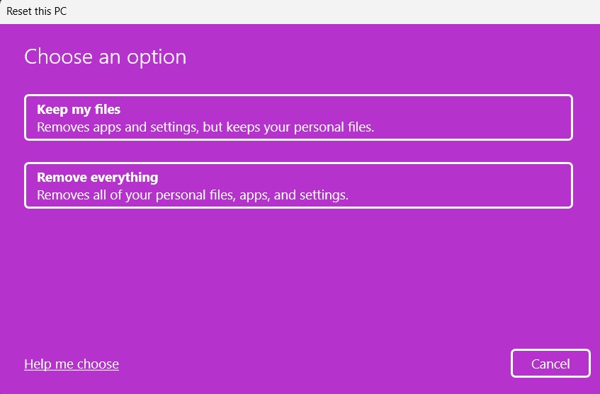 3.Nella finestra successiva, scegli ilConserva i miei fileORimuovi tuttoopzione per andare avanti.