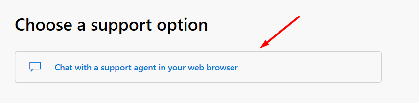4.Nella schermata successiva, fare clic suChatta con un agente dell'assistenza nel tuo browser webopzione.