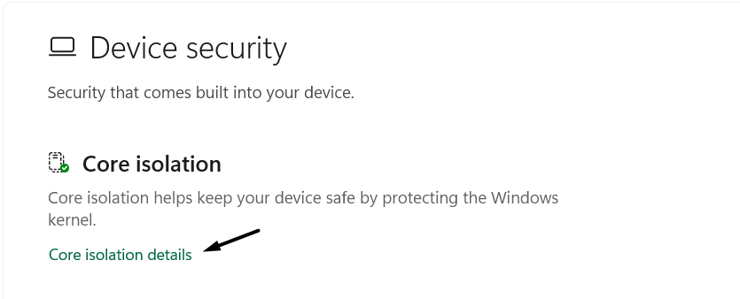 Alcuni utenti nei forum online hanno affermato di aver risolto questo problema tramitedisattivando l'integrità della memorianei PCImpostazioni di isolamento principale. Senza dubbio, questa è un'importante funzionalità di sicurezza e fa un ottimo lavoro. Ma a volte ostacola il funzionamento di alcune funzionalità e causa questo tipo di problemi. Quindi disabilitalo sul tuo PC seguendo i passaggi seguenti: