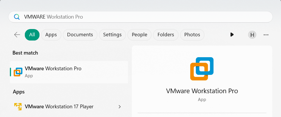 2.Nei risultati della ricerca, fare clic suVMwareper aprirlo sul tuo VMWare sul tuo PC Windows 11.