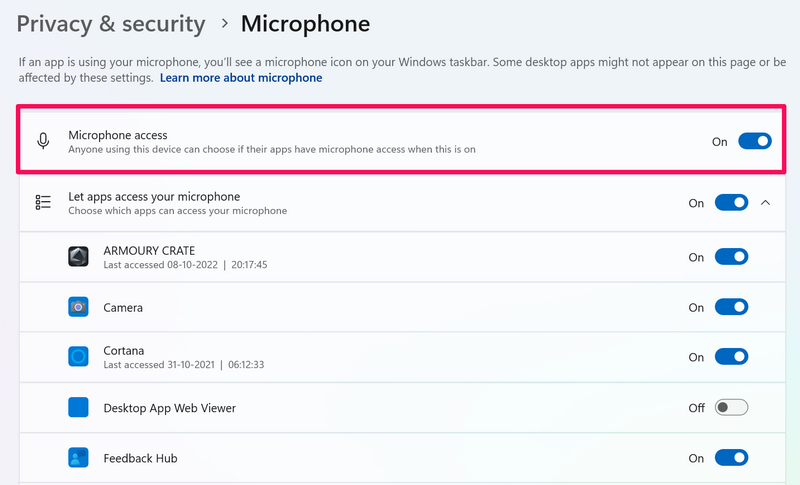 3. Consenti alle app di utilizzare i microfoni in Windows 11