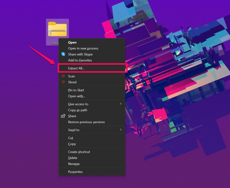 3.Una volta scaricato sul tuo computer,individuare la cartella,fare clic con il tasto destro su di essoe selezionare ilEstrai tutte le opzioninel menu contestuale per decomprimere la cartella.
