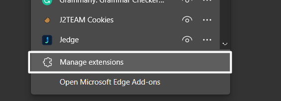 2.Nel popup, fare clic suGestisci estensioniper visualizzare tutte le estensioni web installate sul PC.
