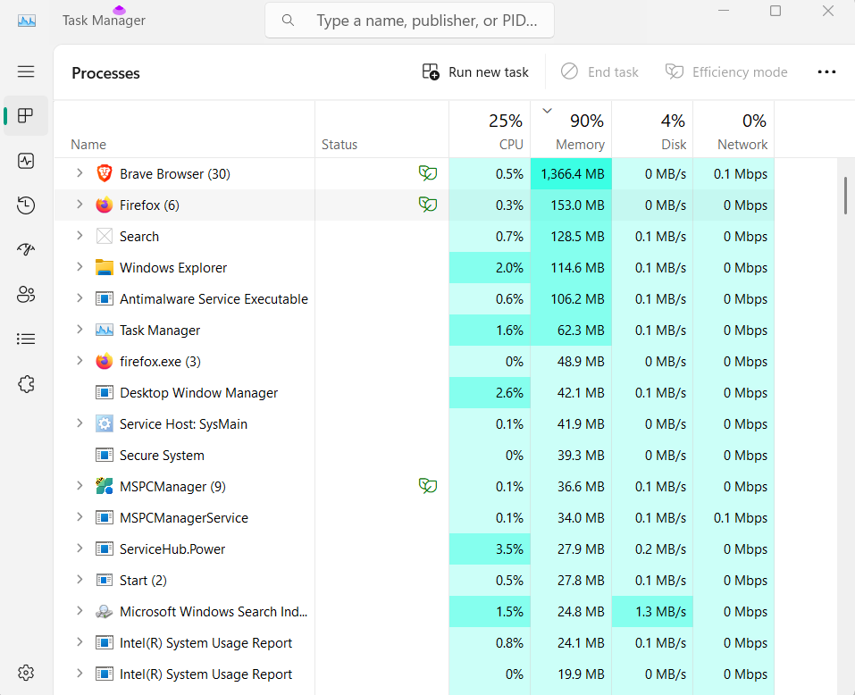 1.Apri ilProgramma Gestione attivitàsul tuo PC Windows utilizzando Ctrl + Maiusc + Esc tasto di scelta rapida.