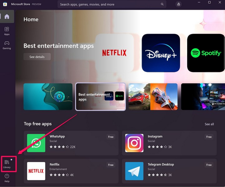 2.Fare clic suBibliotecascheda sulla barra di navigazione laterale per aprire la pagina di aggiornamento dell'app.