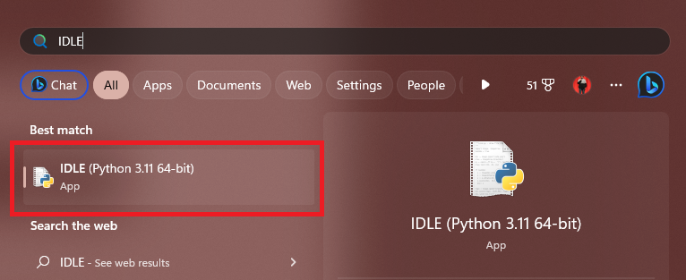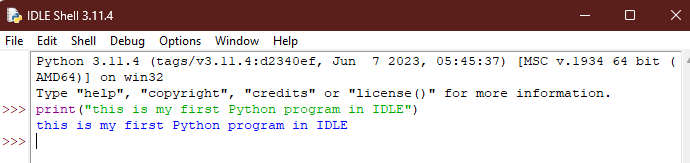 Se non sei una persona a cui piace utilizzare un'interfaccia a riga di comando, potrebbe non piacerti l'esecuzione di codici nell'app Prompt dei comandi. Pertanto, il modo successivo per scrivere ed eseguire un programma Python è utilizzare Python IDLE, che è stato installato sul sistema insieme a Python. Ecco come puoi scrivere ed eseguire codici su Python IDLE: