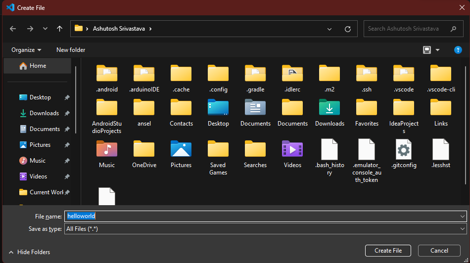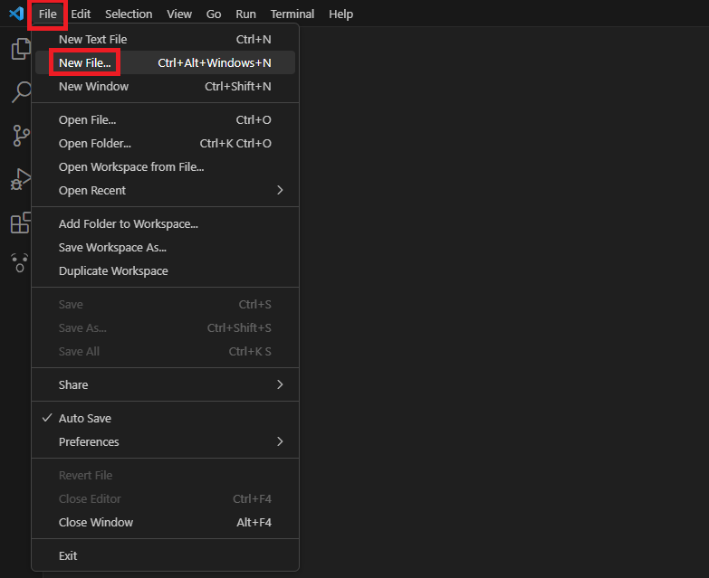 5.Dopo aver creato il file, scrivi il codice nella sezione specifica.