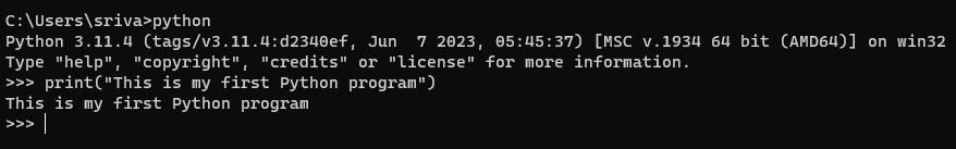 2.Digita il tuo codice nella riga che inizia con>>>simboli e premere il tastoentraretasto per controllare l'output.