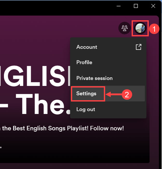 7.Per modificare le impostazioni, fai clic sul tuoimmagine del profilosituato nell'angolo in alto a destra della finestra di Spotify. Dal menu a discesa, seleziona "Impostazioni" per accedere a varie opzioni, tra cui qualità audio, notifiche e preferenze di condivisione sui social.