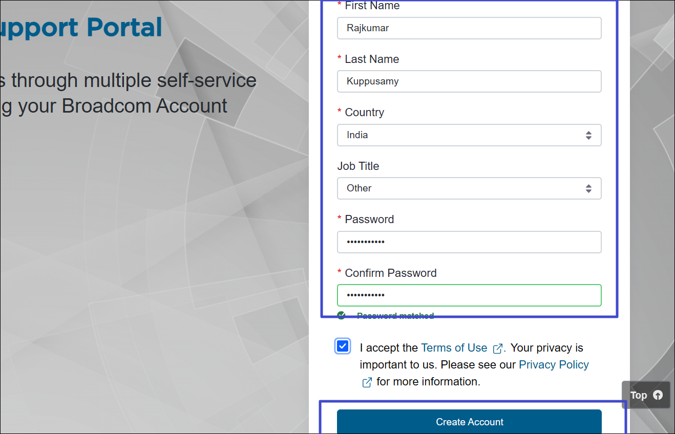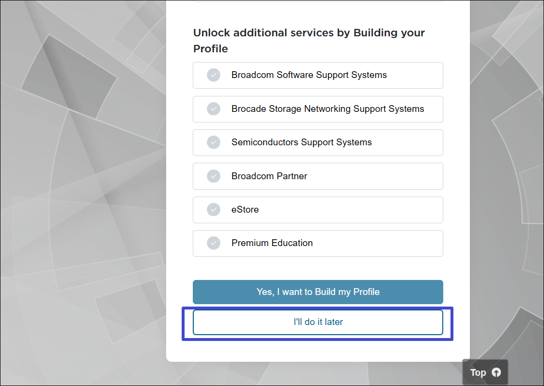 1. Apri il sito web ufficiale del registro Broadcom (https://profile.broadcom.com/web/registration).