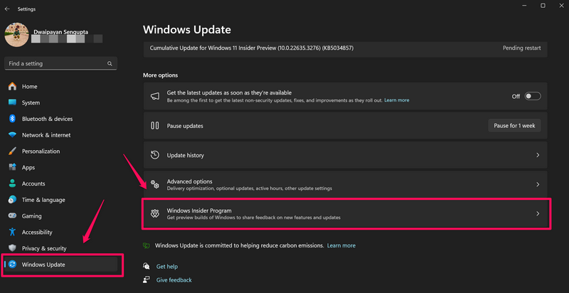 Sebbene l'aggiornamento di Windows 11 24H2 sia disponibile per utenti selettivi che hanno l'impostazione Ottieni gli ultimi aggiornamenti non appena sono disponibili abilitata sui propri PC e laptop, potrebbe non essere ancora disponibile per te. Tuttavia, se il tuo dispositivo è registrato al programma Windows Insider con accesso al canale di anteprima della versione, puoi sicuramente ottenere immediatamente l'aggiornamento Windows 11 2024 sul tuo PC o laptop.