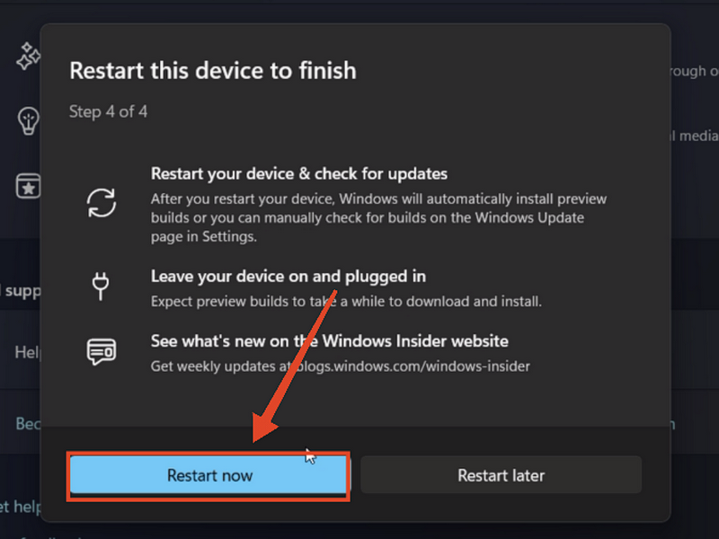 7.Infine, fare clic suPulsante Riavvia oraper riavviare il tuo PC o laptop Windows 11.