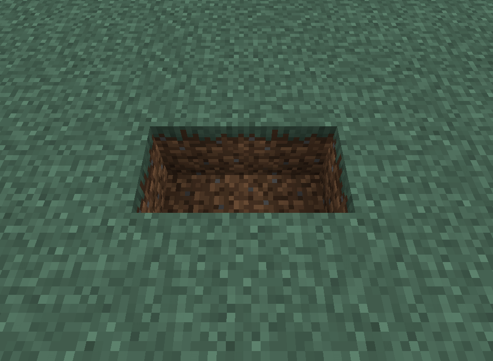 - Scava una fila lunga due blocchi e profonda un blocco.